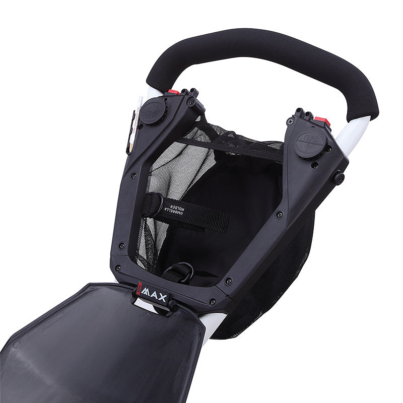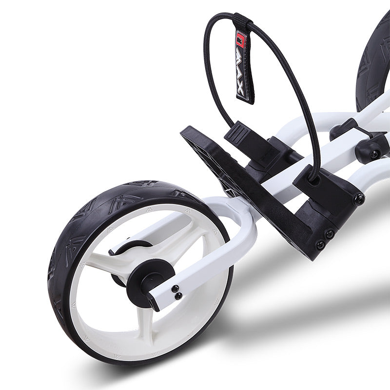 Der Autofold X2 ist ein Trolley, den du sehr schnell falten kannst. Mit einer einzigen Bewegung kannst du ihn ein- und ausklappen, wobei sich das Vorderrad automatisch an seinen Platz bewegt. Sein überzeugend minimalistisches Design bietet alles, was am Platz gebraucht wird. Eine neu konstruierte, untere Taschenhalterung verbessert die Stabilität für alle Golftaschen am Trolley.